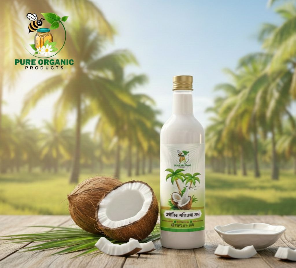 আমাদের কাঠের ঘানিতে ভাঙানো ১০০% বিশুদ্ধ ও অর্গানিক নারিকেল তেল। কোনো কেমিক্যাল বা প্রিজারভেটিভ ছাড়াই আমরা পৌঁছে দিচ্ছি সরাসরি আপনার হাতে।